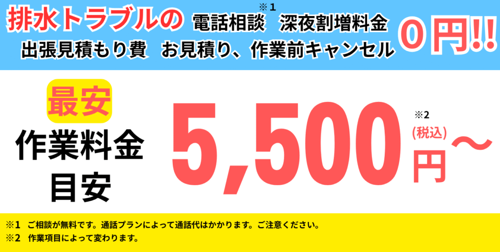 当店は出張費無料サービス型の排水トラブル修理業者です。