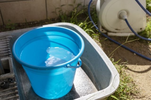 2.バケツに水を入れて、便器より高い位置からいきおいよく流し込む。